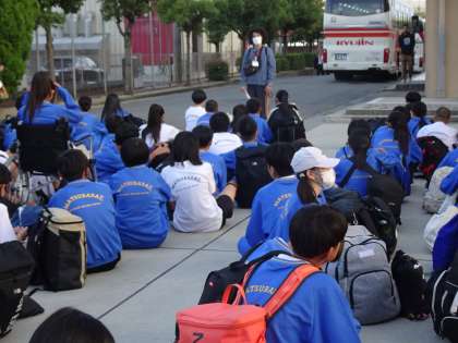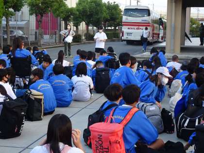 1年生が、出発式を行いました。今は、とても良い天気です。