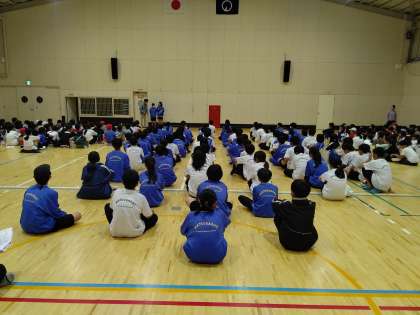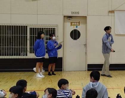 小学校2校と一緒に夕べのつどいを行いました。七中生が司会をしました。