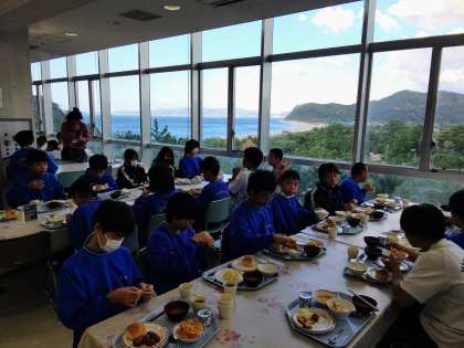朝食です。窓の外は、絶景でした。