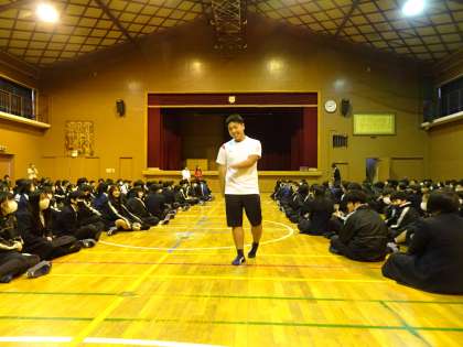 また、来年から新しくなる体操服のお披露目がありました。防臭、防寒に優れています。