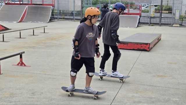 楽しんでスケボーをしている様子が見られました。指導が終わった後も自主練する様子も見られました。