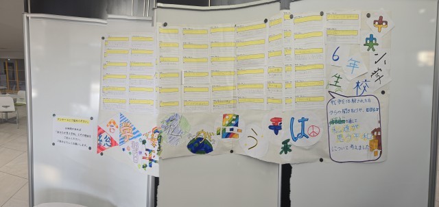まつばらテラス(輝)にて松原中央小学校の6年生が平和に関する展示を行っています。