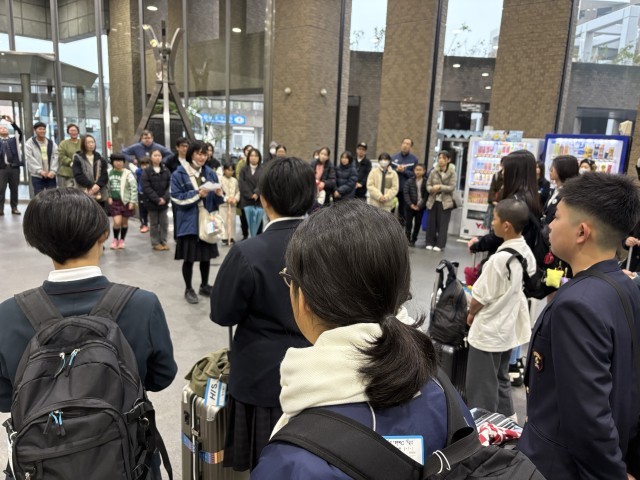 出発式では、私たちは松原市の代表として自覚を持ち、多くのことを学び経験して帰ってきます。交流を通して多くのことを吸収し成長してきます。と生徒の代表から力強いあいさつがありました。