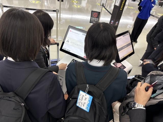 松原市役所を出発し、関西空港に到着しています。出国に向けたさまざまな手続きもまた経験です。
