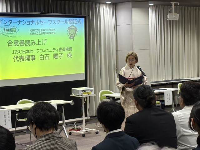 松原第二中学校区、松原第五中学校区のISS認証式典が行われました。