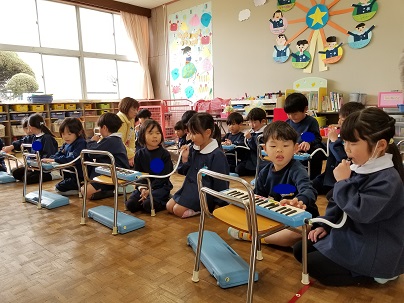 ずっとあこがれていたピアニカをほし組さんに教えてもらいながら触らせてもらい、とても喜んでいました。大きい組になったらいっぱい練習しようね。