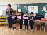 今日のお別れ会では、発表会で披露した「大阪うまいもんのうた」や「あたまかたひざ...