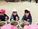 4歳児はみんなで、今度の園外保育に向け、練習もかねてシートの上でお弁当を食べまし...