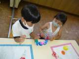 今日はとっても良い天気だったので、れんげ組さんは外で『染め紙遊び』をしました。 ...