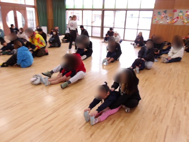 親子で一緒に柔軟体操をしたり、ふれあいをしたりして楽しみました。