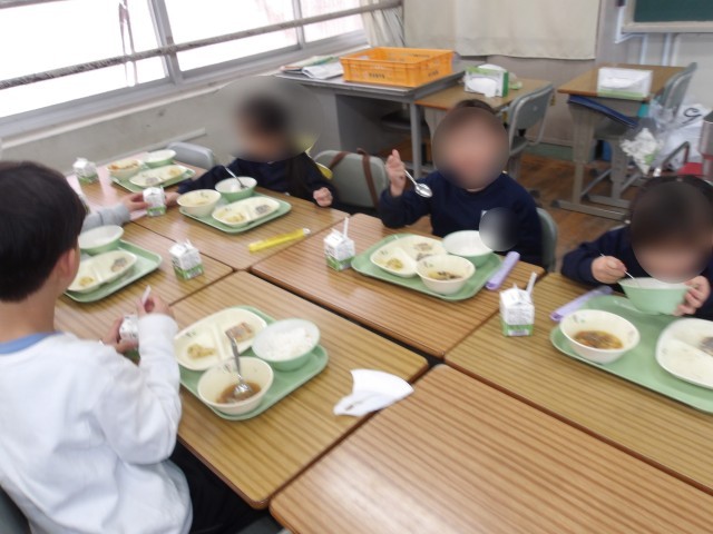 その後は、5年生と一緒に給食を食べました。メニューは、ごはん、太刀魚の塩焼き、肉じゃが、柚和え、牛乳です。