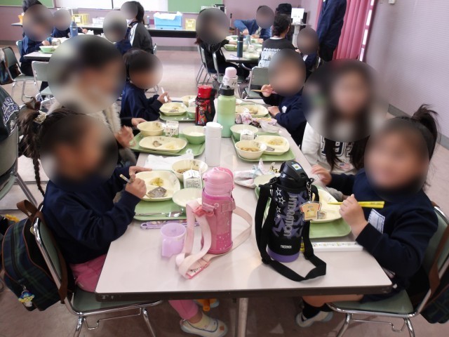 天美小学校で給食交流会をしました。