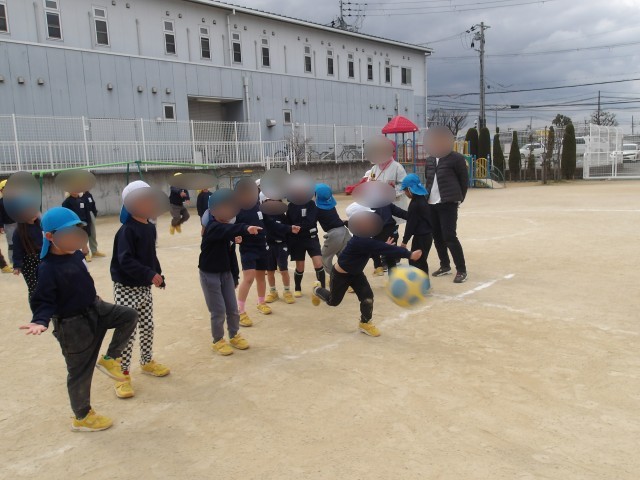 4チームに分かれ、ダンシング玉入れやリレー、ドッジボールをしました。