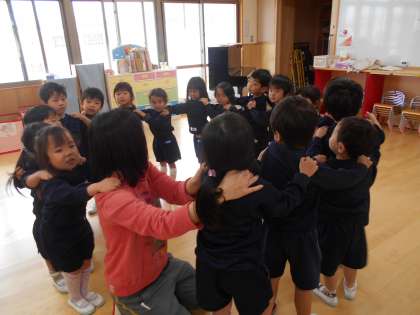 「おわかれまであと少しだけど、みんなでいっぱい遊ぼうね。何して遊びたい?」と子ども達に問いかけ、今日は子ども達のリクエストに応じて遊びました。
