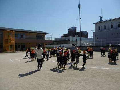 3学年でおわかれ会をしました。大きい組さんと過ごす残り少ない時間を楽しめるように、ひまわり組・すみれ組の子ども達が企画や司会係をしました。天気も良く、園庭や遊戯室でクイズやふれあい遊び、プレゼント交換を楽しみました。
