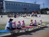 園庭で運動会の練習が始まると、他の学年の子ども達がベンチに座って見学する姿が!...